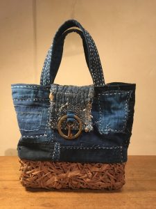 木綿の生地を中心に古布や手染めの柿渋染めの布など心踊る布たちを集めて遊び心を混ぜ込んで製作しています。